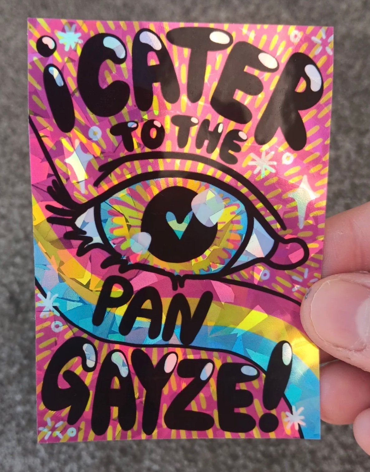 This sticker is a digitally-drawn sticker version of my beloved Queer Gayze prints!