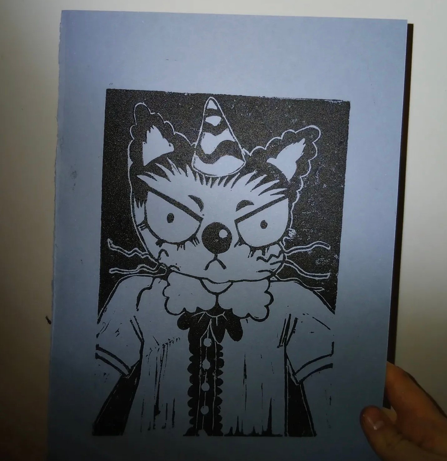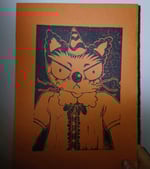 Angry Clown Cat A5 Linocut Print (Remake)
