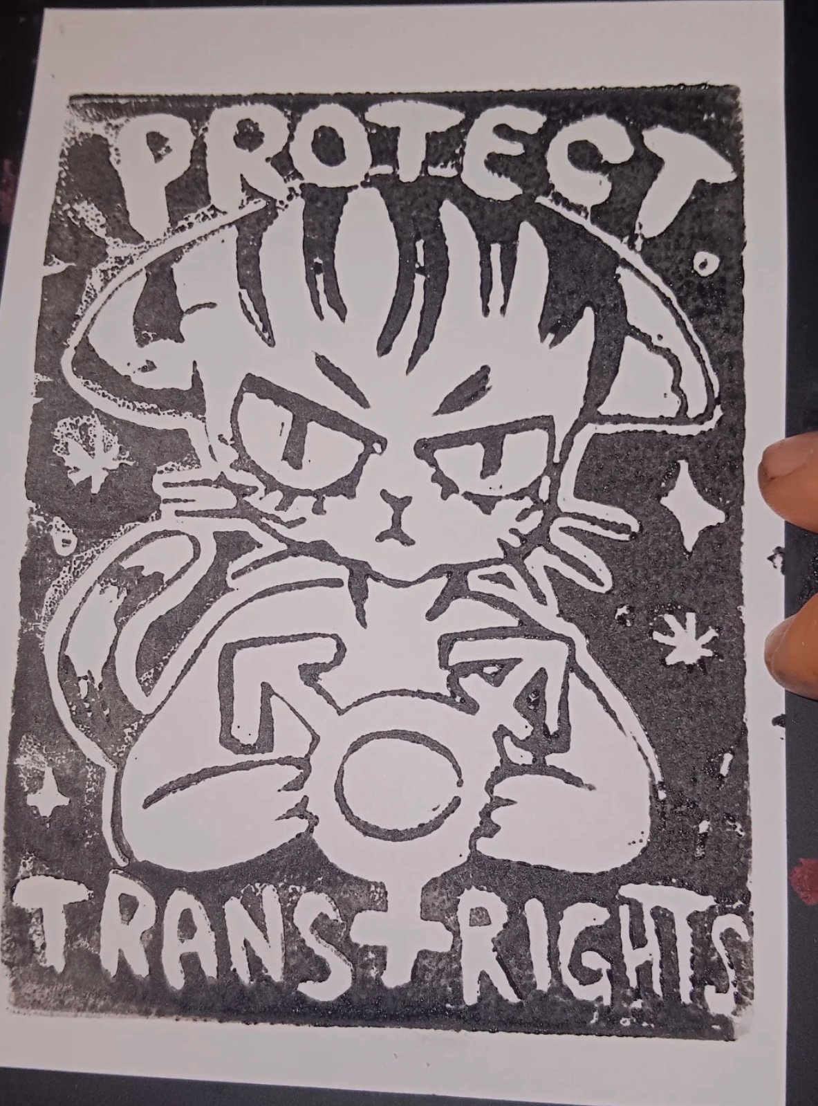 Protect Trans Rights! Linocut Postcard